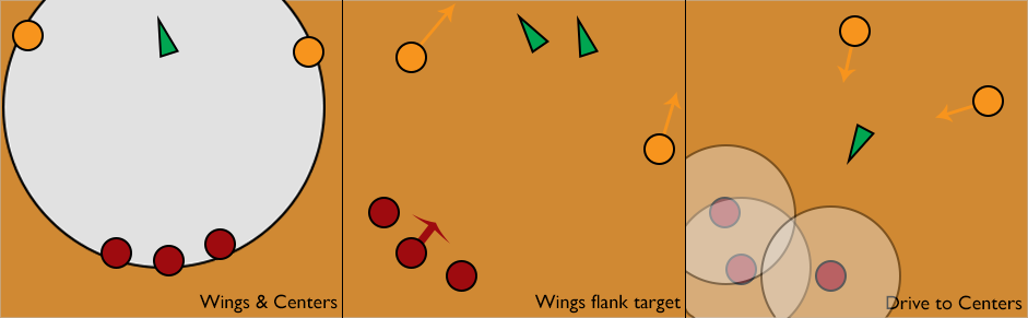 I made these diagrams to demonstrate the idea of a pack consisting of centers and wings, of a flanking and driving style of hunting.